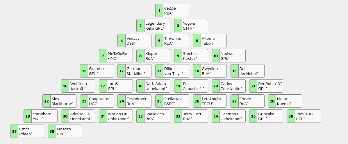 Cmdr. BlueFox bittet zum Tanz! Nach dem Vorbild der Deutschen Duell Rangliste, wird auch bei uns an einer GPL-Rangliste gearbeitet. Wer gerne mitmachen möchte, sende seine E-Mailadresse an BlueFox per DM im Discord