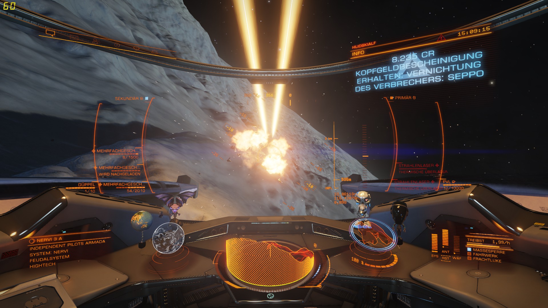 Da gibt's viele Containerfundstellen (wahrscheinlich krachen da öfters Schiffe rein...) wo auch gesuchte Schiffe stehen, die Bergung versuchen. Die mal anpieksen und dann Topgun- like Luftkämpfe im Gebirge! Superspaßig! Da meine Courier kampfmäßig nicht viel kann, bin ich jetzt mal mit der Mamba hin, das macht richtig Spaß!!! (wäre ne Überlegung für Abwechslung im PvP....