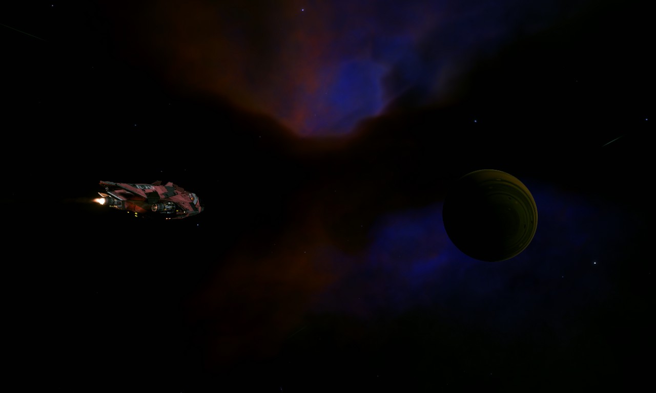 Bei der letzten Landung scheine ich meine Kom-Anlage beschädigt zu haben. Es wäre vielleicht doch besser gewesen, VOR der Landung auf einem Mond, die Schilde zu aktivieren. Nunja, ich hoffe, dass ich es, ohne weiteren Vorkommnisse, bis zu meinem nächsten Ziel, dem Möwen-Nebel, komme.