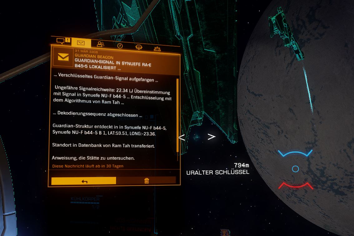nach scan erhält man guardian positionen , den auftrag zur untersuchung von ram tah (per mail)