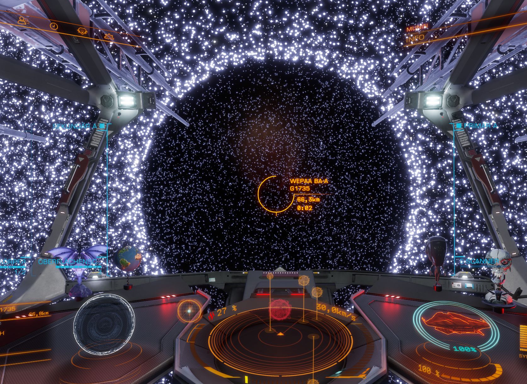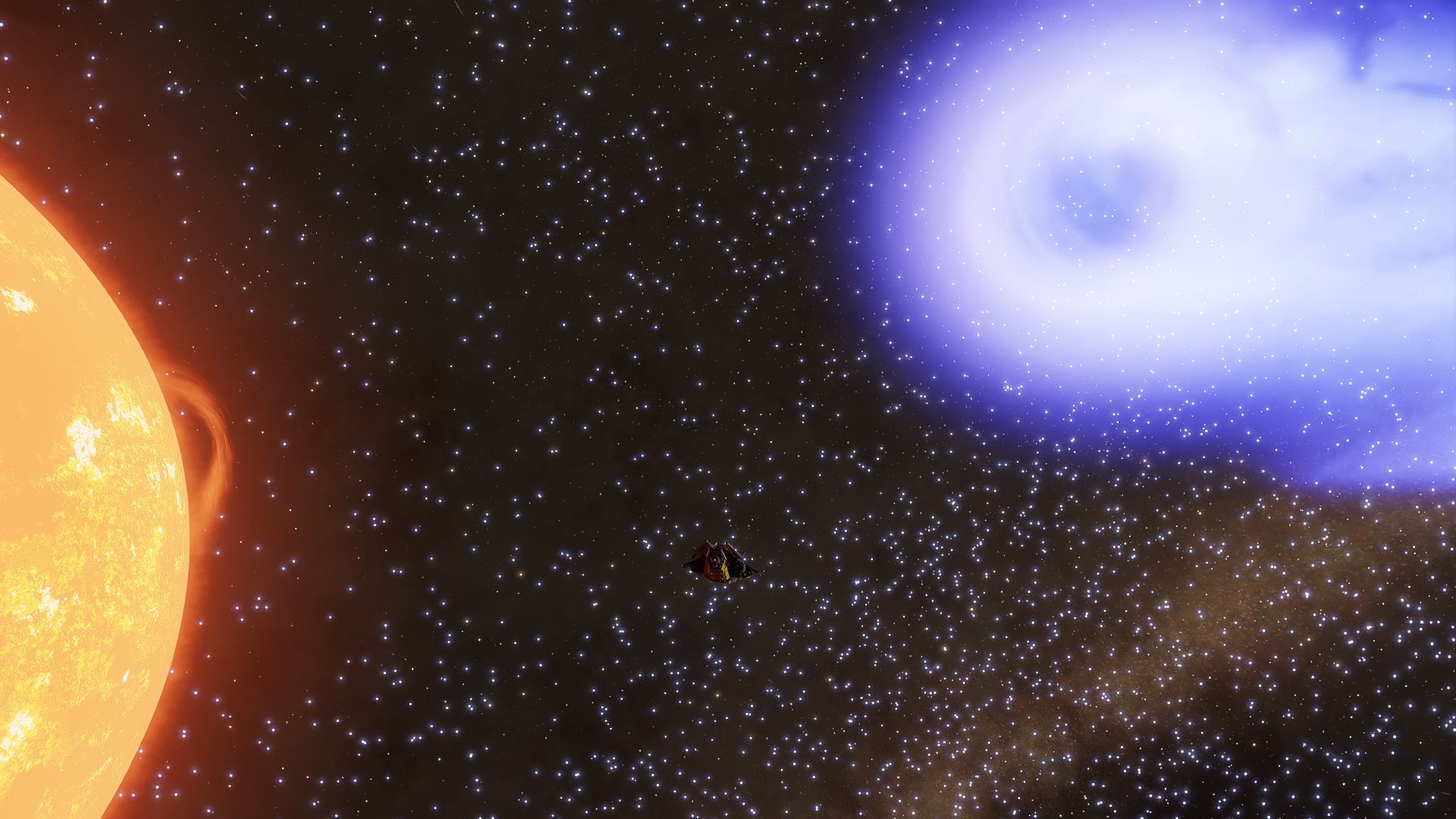 Jetzt fliegen wir alleine mit unseren kleinen tapferen Schiffen weiter und dank Fazius Expertise habe ich dieses Schwarze Loch besucht: